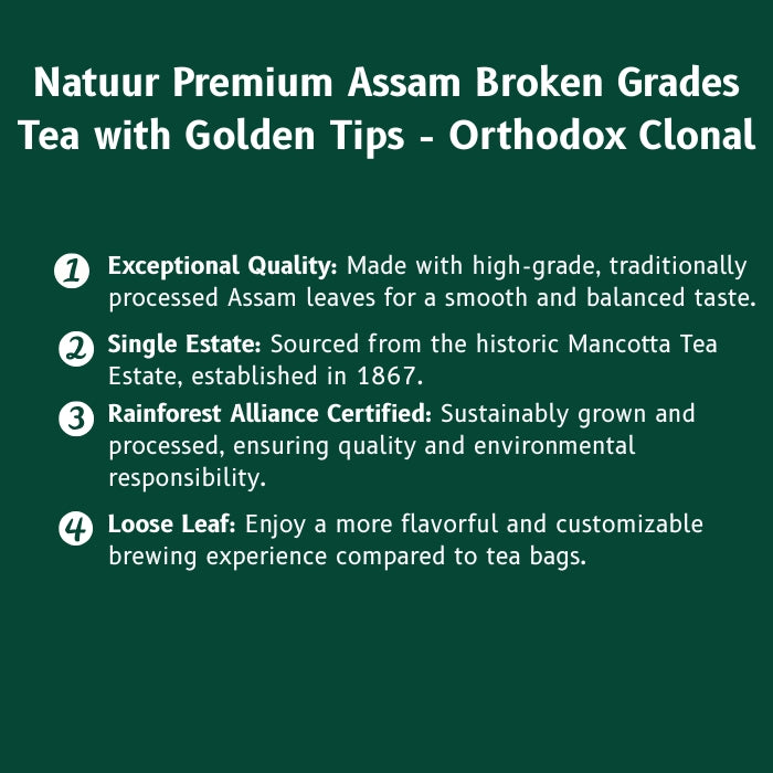 Natuur Premium Assam Broken grades tea leaves with golden tips - orthodox clonal Export quality