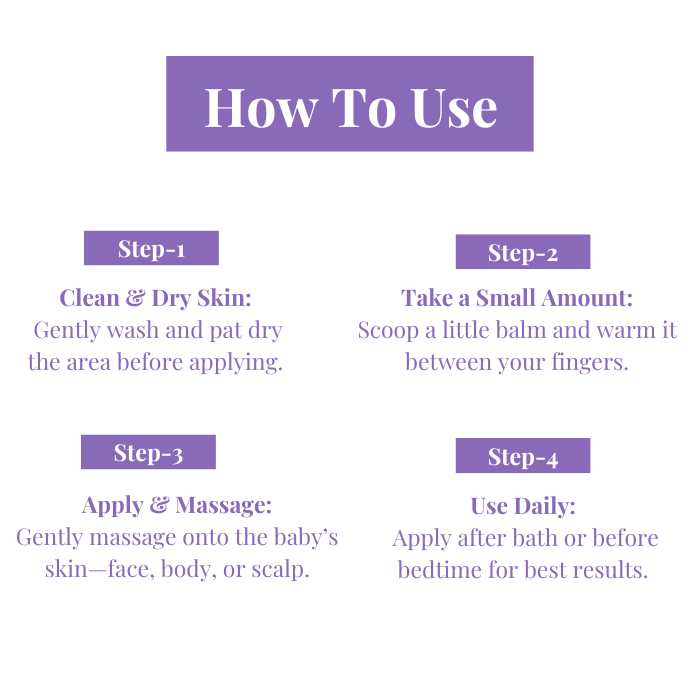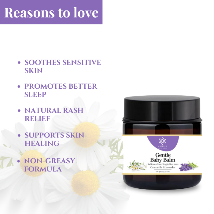 At NATUUR, we understand that baby skin is sensitive and delicate, which is why we avoid harmful chemicals such as SLS, Parabens, or Mineral oils in our formulations. Our balm is infused with plant-based ingredients, making it safe for all skin types.