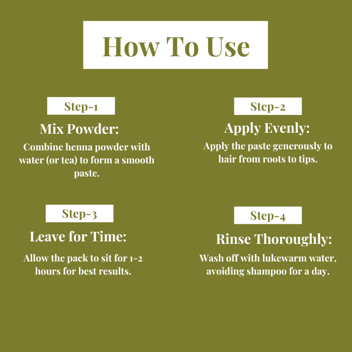 To use, simply mix the powder with tea water and lime juice, let it sit in an iron kadhai for up to 24 hours, and then apply it to your hair length. Leave it on for 2-3 hours and wash off with a sulfate-free shampoo. You can also add some curd or an egg to the mixture to make it more conditioning.