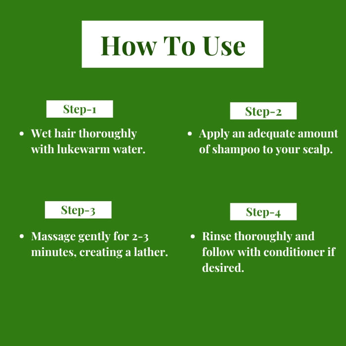 To use, simply wet your hair, apply the shampoo gently onto your scalp and hair in circular motions, leave it on for a few minutes, rinse and repeat if necessary. For best results, shake well before use.
