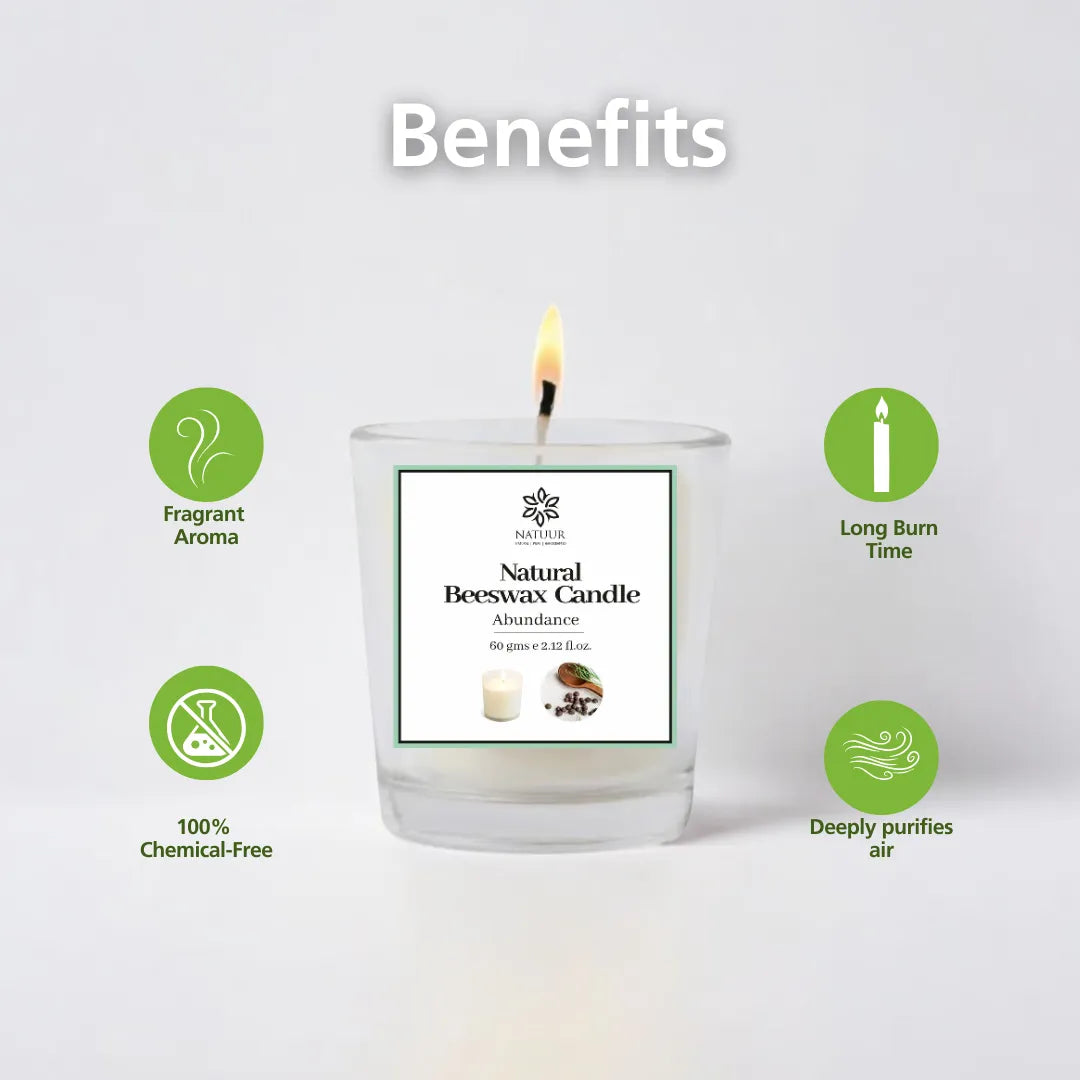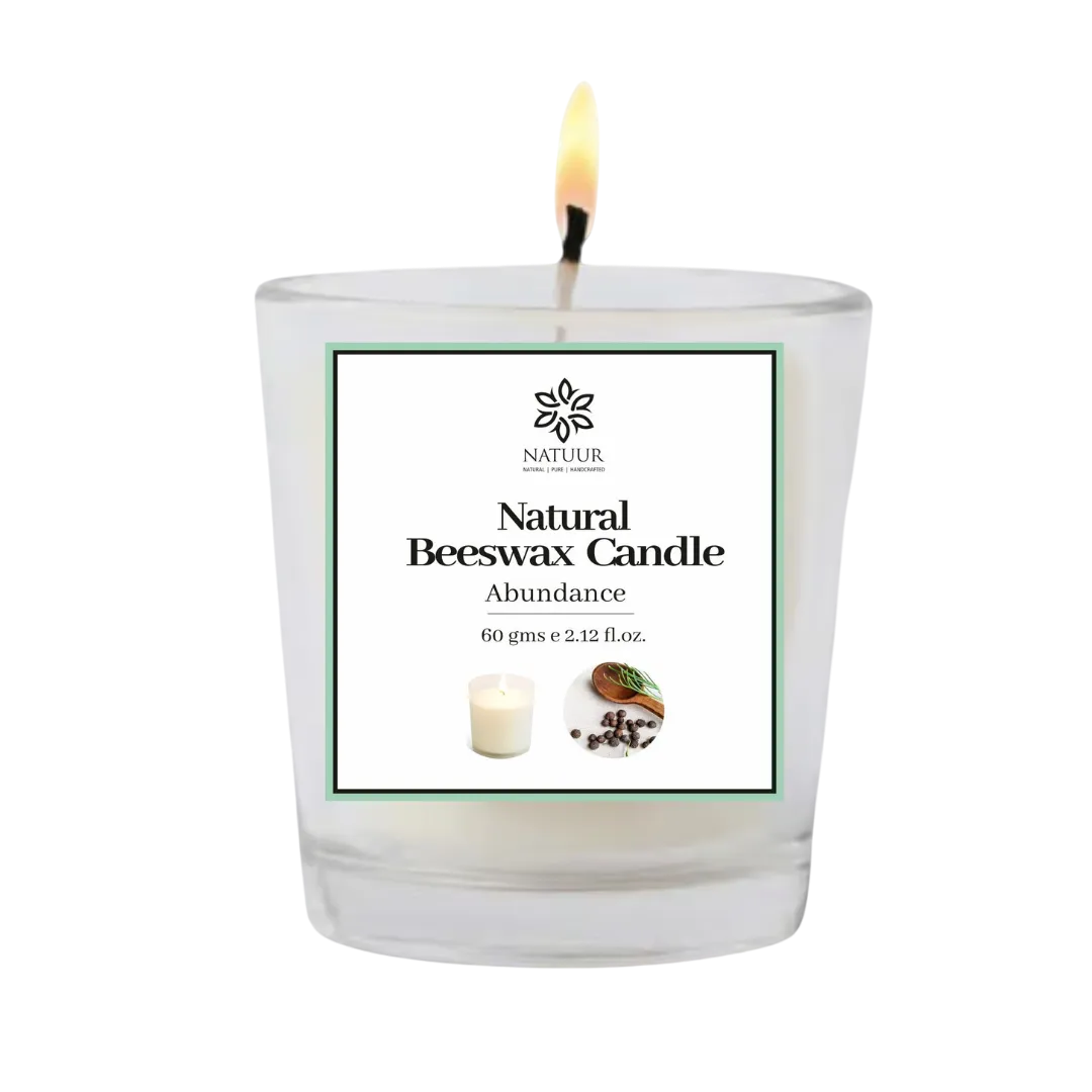 At Natuur, we use only premium ingredients for premium results. Our products are free from SLS, parabens, palm oil, synthetic fragrances, GMOS, silicones, harsh detergents, sulfates, and artificial colors. Add the Natuur's Beeswax Abundance Candle to your home and experience the natural and gentle essence of our products.