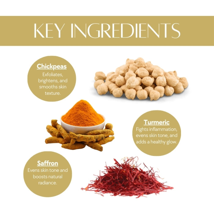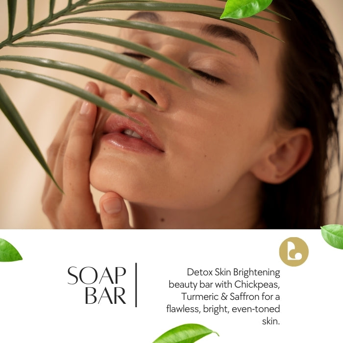 Introducing Besan Haldi Soap, the perfect natural solution for those looking to brighten their skin and remove tan. Our organic, handmade, vegan, sulfate-free, phosphate-free, paraben-free, and synthetic colors and fragrance-free soap is infused with the goodness of besan, an age-old traditional paste used by Indians for skin brightening and removing tan and dead skin cells. Besan and haldi work together as natural healing ingredients that help with sun damage, aging, pimples, and oily skin. This soap is gentle and pure, making it a perfect face and body cleanser for all skin types, including sensitive skin. It is also great for dry, tanned, and blemished skin, helping to even out the tone and provide a natural glow and luster. Incorporating this soap into your daily routine will leave your skin feeling flawless and looking vibrant. Our soap contains curcuma longa and chickpea, along with besan, turmeric, and saffron, to provide the ultimate skin care experience. And, like all our products, it's 100% vegan, with no harsh detergents, sulfates, or synthetic fragrances. Try Besan Haldi Soap today and experience the benefits of premium ingredients for premium results. Store in a cool and dry place, and wet skin before gently applying the soap to create lather and rinse clean.