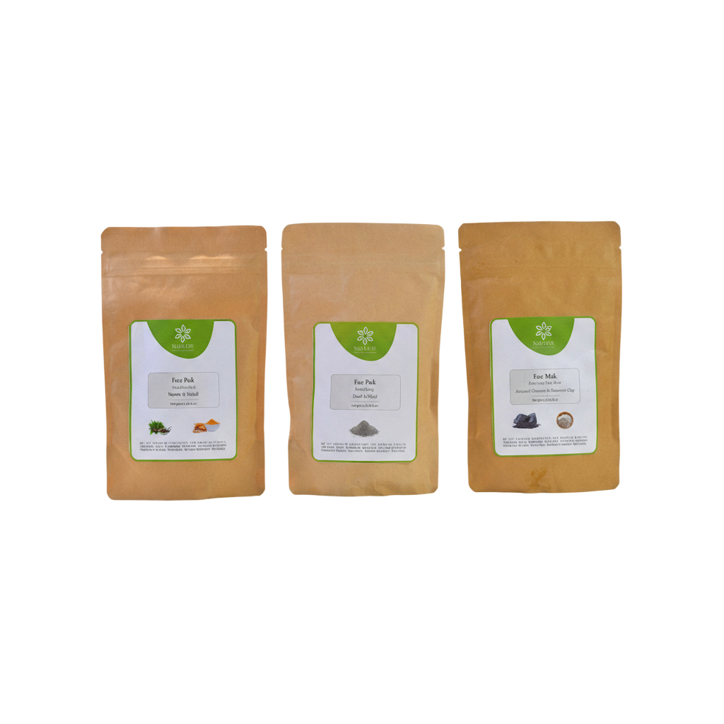 Introducing Natuur's Oily and Acne-Prone Skin Face Pack Set, a powerful trio formulated to purify and balance troubled skin. Each 100gms pack is a potent blend of natural ingredients targeting excess oil and blemishes. Dead Sea Mud Pack detoxifies and cleanses pores, reducing acne and breakouts while replenishing minerals. Activated Charcoal and Bentonite Clay Pack absorbs impurities and excess oil, leaving skin clear and matte. Neem Haldi Face Pack harnesses the antibacterial properties of neem and the healing benefits of turmeric to soothe inflammation and promote clear, healthy skin. Reclaim your confidence with this effective set, providing the ultimate solution for oily and acne-prone skin concerns.