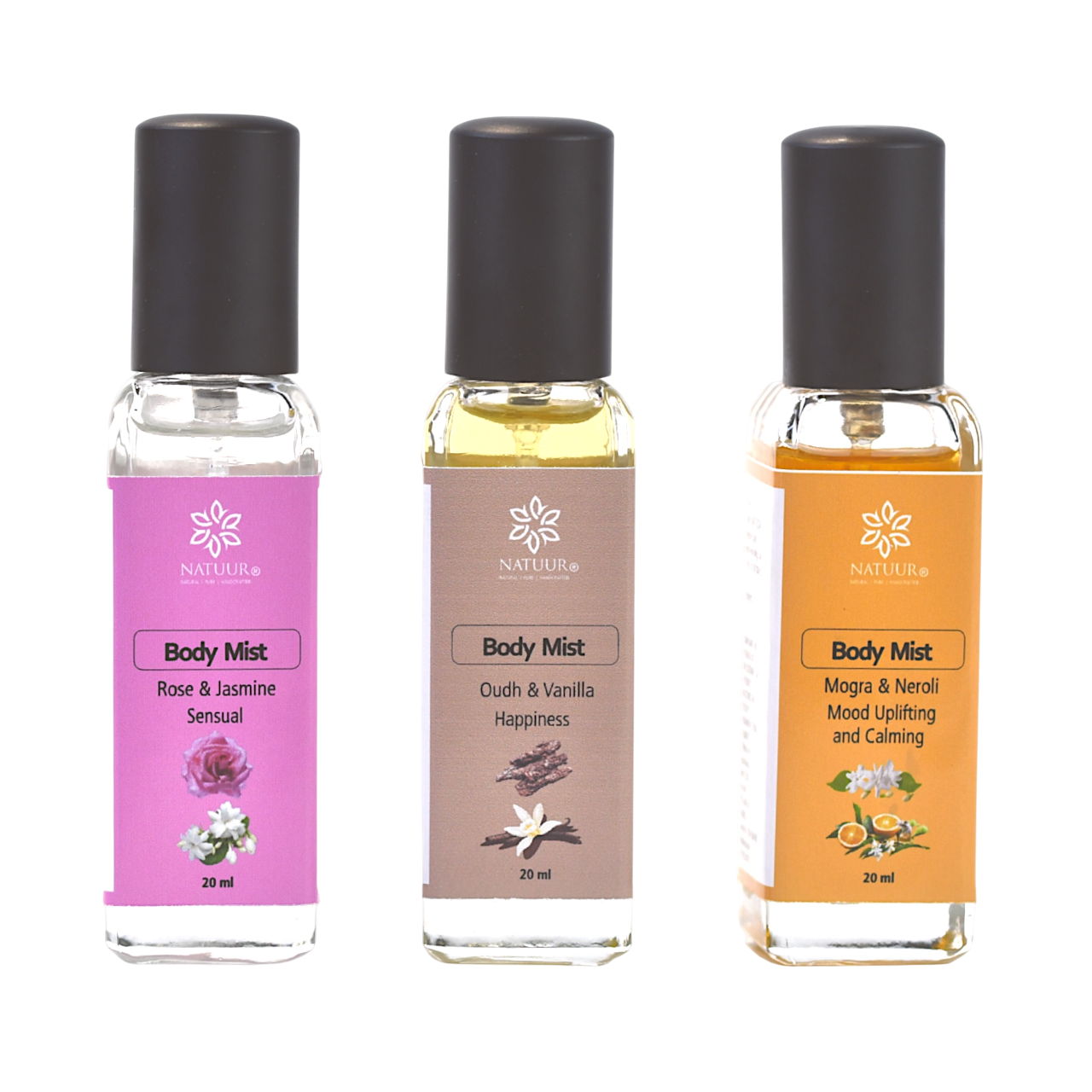 Natuur Body Mist Trio Set - Rose, Oudh, Mogra | 20ml x 3
