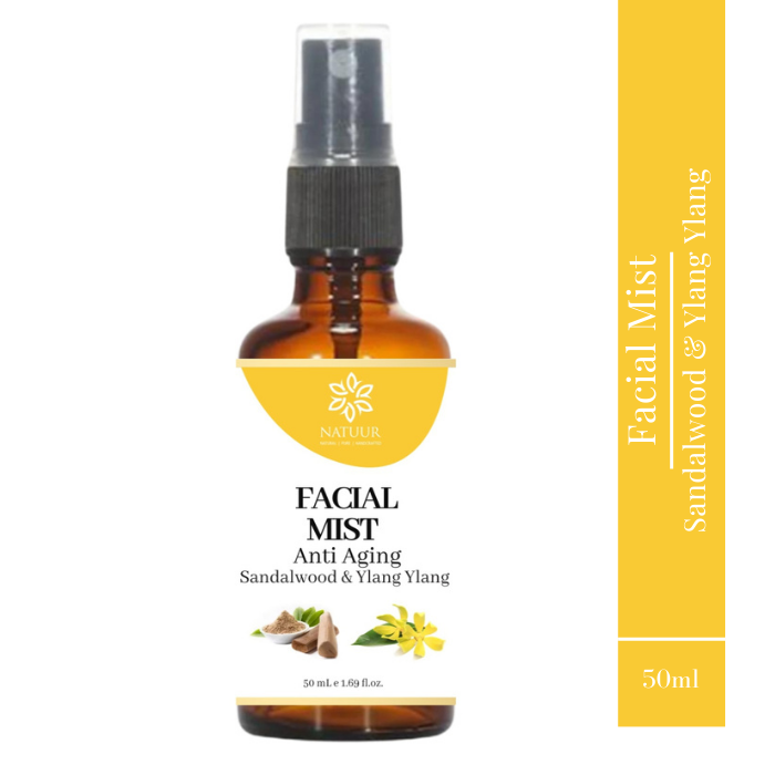 Natuur's Facial Mist made with goodness of Sandalwood and Ylang ylang is the best soothing solution for the anti aging skin. Sandalwood and Ylang ylang in it are the most beneficial ingredients recognized for its aroma as well as its exquisite healing qualities. It nourishes tired and dull skin with a gentle and refreshing Sandalwood & Ylang ylang face mist. This organic formula also helps reduce acne and early signs of ageing. Sandalwood retains moisture levels, tones, purifies, cools and soothes and ylang ylang is detoxifying and cooling. For best results use on slightly damp skin just after a bath or shower.