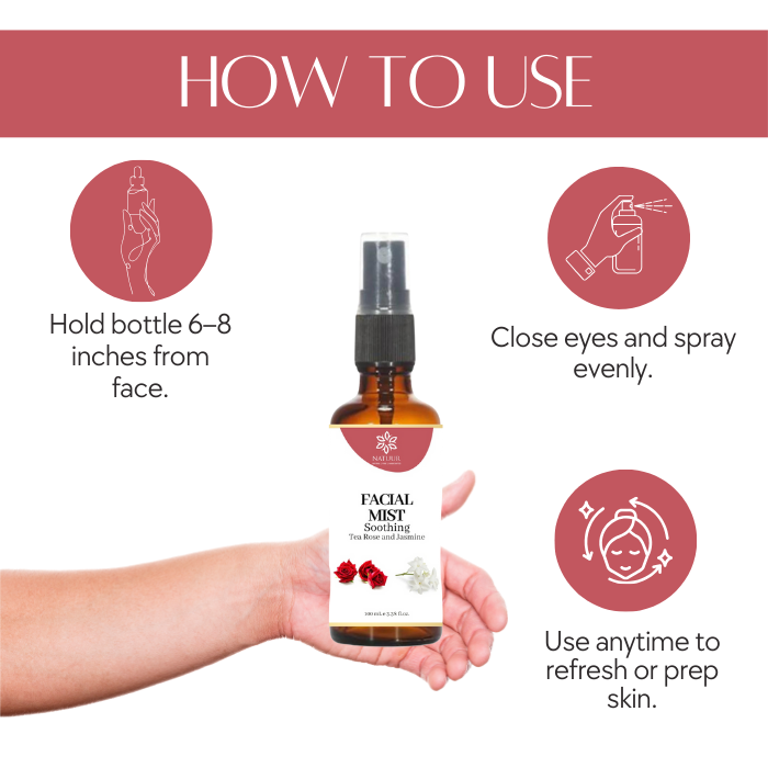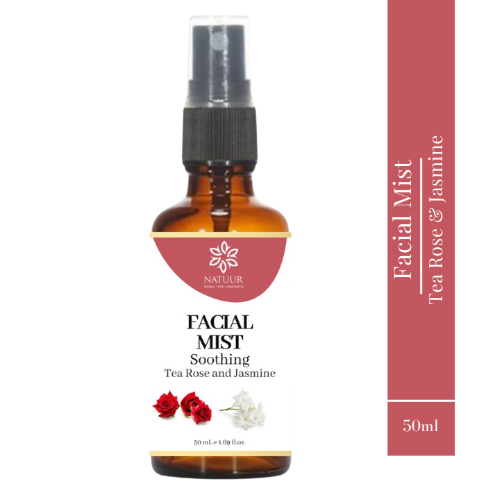 Natuur's Facial Mist made with goodness of Tea Rose and Jasmine and the best soothing solution for our skin. A refreshing splash of rose and jasmine mist is the best self-care routine to soothe and freshen your skin. This facial mist has anti-inflammatory properties that helps in healing of the skin leaving it clean and fresh. It also restores vitality, suppleness, and balances the pH value of the skin. Applying it daily after cleansing your face helps maintaining the oil balance of the skin and also help keeping the skin healthy & young. Tea Rose and Jasmine bring in a aromatic therapy along with soothing skin.