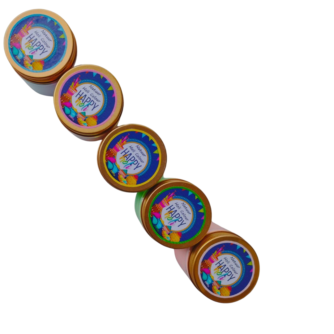 Celebrate a safe and colorful Holi with Natuur Organic Holi Colors! This special Holi Joy Pack includes 5 vibrant shadesBlue, Pink, Yellow, Green, and Peach, each made from pure natural ingredients like Indigo, Rose Petals, Beetroot, Turmeric, Neem, and Saffron.