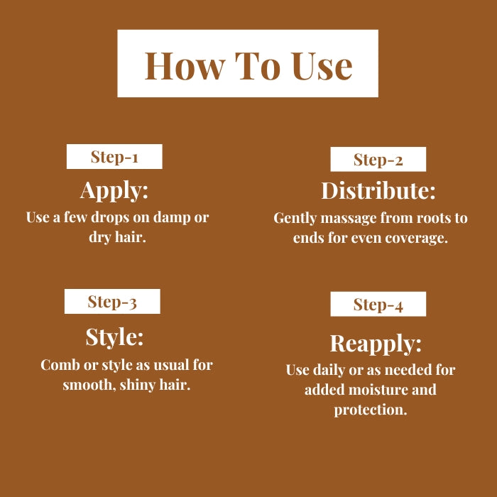 Apply and massage on hair length post wash. Helps in nourishing and detangling the hair.