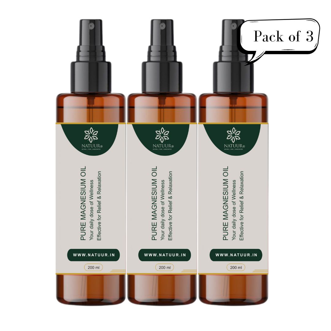Introducing Natuur's Pure Magnesium Oil Set, a trio of wellness essentials designed to nourish your body from within. Magnesium, renowned as the "master mineral," is indispensable for various bodily functions, including muscle relaxation, nerve function, and energy production. This set of three bottles ensures you have an ample supply of this essential nutrient to support your overall health and vitality. Regular application of magnesium oil can help alleviate muscle tension, promote restful sleep, relieve stress, and support cardiovascular health. Incorporate this natural remedy into your daily self-care routine to experience the myriad benefits of magnesium, and embrace a life filled with vitality and well-being.