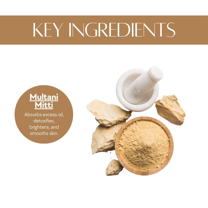 Our Multani Mitti powder is a natural and safe ingredient that helps tighten and brighten your skin while nourishing your hair. It is a unisex product suitable for oily skin and face care. Our powder is free from harmful chemicals such as SLS, parabens, palm oil, color, synthetic fragrances, GMOs, silicones, harsh detergents, and sulfates. Experience premium results with premium ingredients.